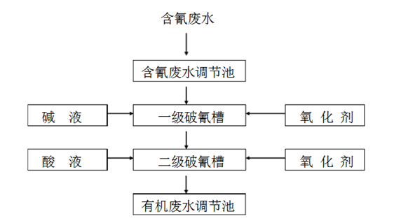 氫氰根離子用一般的絮凝沉淀法不能將其直接去除,必須通過氧化作用,打破其化學(xué)鍵的結(jié)構(gòu),最終使其降解,形成CO2和N2得已去除。