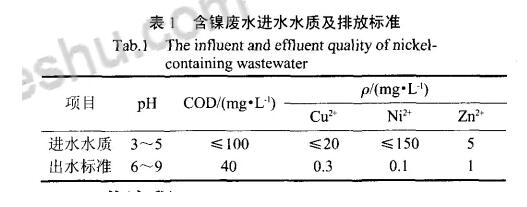 各企業(yè)生產(chǎn)的廢水統(tǒng)一排放收集到廢水處理設備廠,按照不同的處理方法進行分股分類,其中含鎳廢水的水質情況及出水標準如下圖所示。